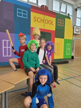 Außerdem gestaltete der Jahrgang 2 einheitliche T-shirts für den Auftritt. Im Jahrgang 3 wurden Müsliriegel hergestellt und Entspannungsübungen standen auf dem Programm. Der Jahrgang 1 übte verschiedene Bewegungslieder und Bodypercussion. Auf dem Programm des 4. Jahrgangs standen noch verschiedene Fahrradübungen. Auch wurden Spaziergänge zum Spielplatz unternommen und Großgruppenspiele sorgten für viel Freude bei den Kindern. Frau Töllner, unsere Schulsozialarbeiterin, bot jeder Klasse eine Einheit mit Kooperativen Spielen, bei der die Schülerinnen und Schüler als Team Aufgaben erledigen mussten.