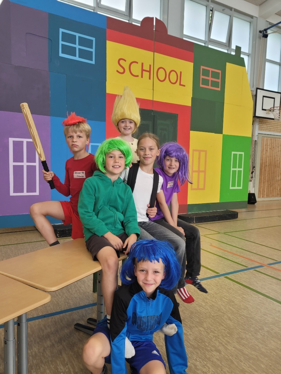 Wir danken an dieser Stelle allen Beteiligten und Unterstützern. Ein herzliches Dankeschön an alle Eltern, die beim Auf- und Abbau, sowie beim Buffet geholfen haben. Außerdem danken wir der Kunst-AG rund um Frau Zillinski für die Gestaltung des Bühnenbildes.